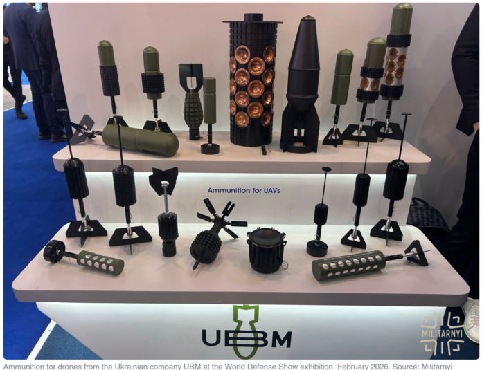 What do we call the warheads fitted to one-way-attack drones like the Geran-2? Their role is clear, but there is no existing lexicon that they fit into. There is no lexicon to describe factory-designed and produced one-way-attack UAV warheads. To further confuse the issue, Russia and Ukraine use very similar nomenklatura to describe their drone-delivered munitions. For example Russia’s KOFZBCh is a 90 kg warhead designed to be used on a Geran-2 but Ukraine’s KOFZBCH-3F (note the ‘3F’ added at the end) is designed to be dropped from a bomber drone – the ‘3F’ means that it is in the nominal 3 kg weight class. In English, the Russo-Ukrainian designation ‘KOFZBCh’ can be broken down into ‘shaped-charge, fragmentation, blast, incendiary, combat unit’, so there is a logic to it.
